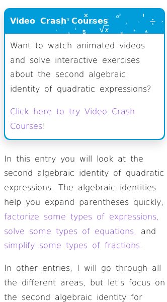 Article on The Second Algebraic Identity of Quadratic Expressions