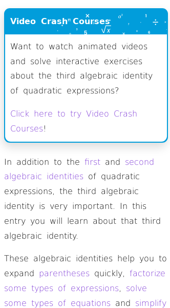 Article on The Third Algebraic Identity of Quadratic Expressions