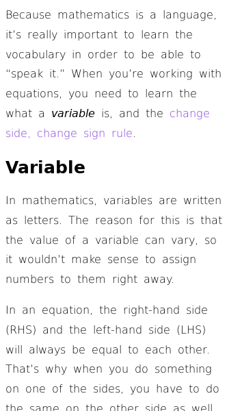 Article on How to Solve Equations (Change  Sides, change sign)