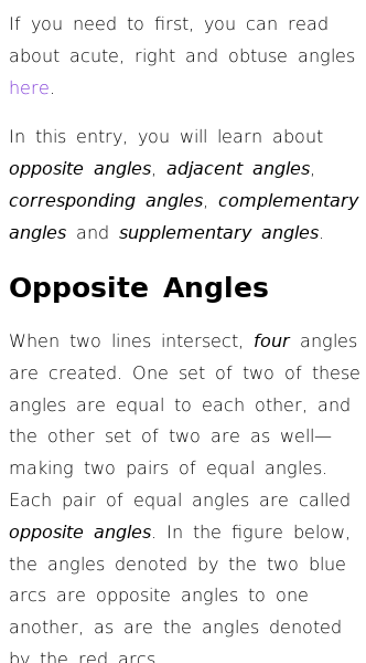 • Pairs of Angles (Opposite, Adjacent and Supplementary)
