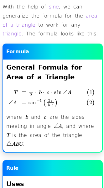 • General Formula for Area of a Triangle