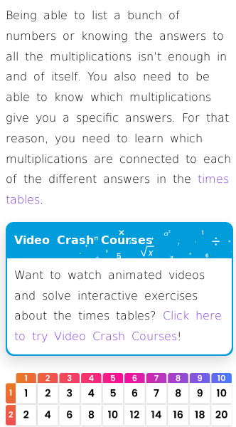 • Which Products Give the Answers in the Times Tables?