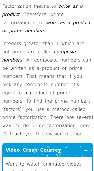 • Prime Factorization Using the Division Method