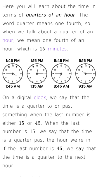 • Learning About the Clock (Quarters of an Hour)