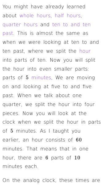 • Learning About the Clock (Five To and Five Past)