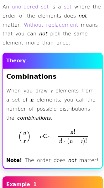 • Combinations (Unordered Sampling Without Replacement)
