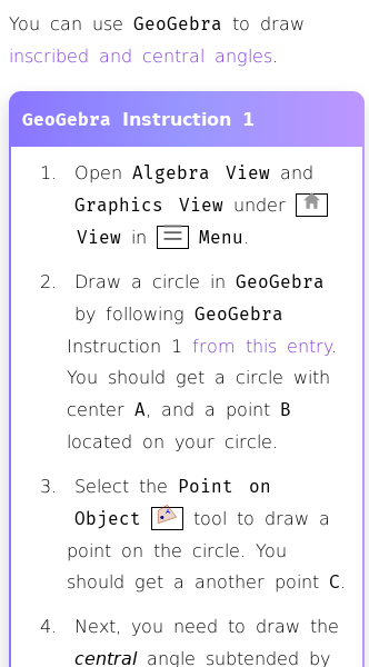• Inscribed and Central Angles in GeoGebra