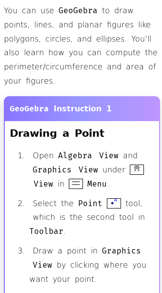 • Planar Figures, Perimeter (Circumference) and Area in GeoGebra