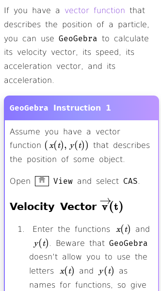• Position, Velocity, Speed and Acceleration in GeoGebra