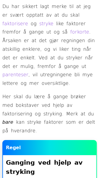 Oppslag om Hvordan forkorte brøk med bokstaver