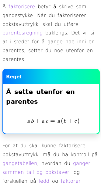 Oppslag om Hvordan faktorisere bokstavuttrykk