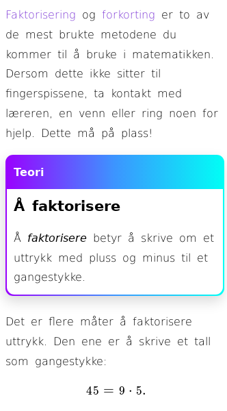 • Hvordan faktorisere og forkorte brøker med bokstaver