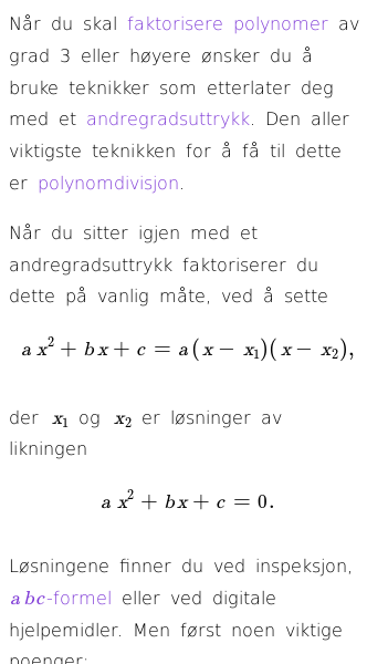 • Hvordan faktorisere polynomer av grad 3 og 4