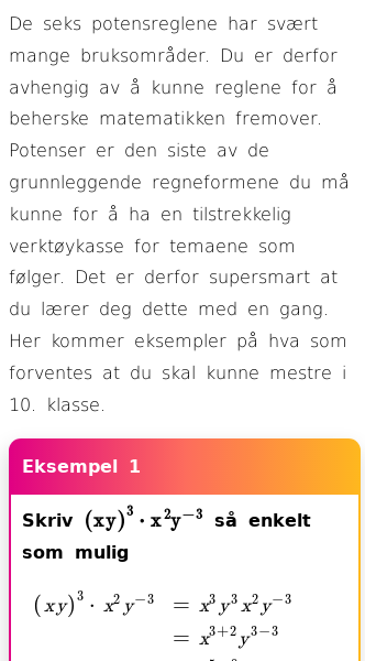 Oppslag om Eksempler på regning med potenser med bokstaver