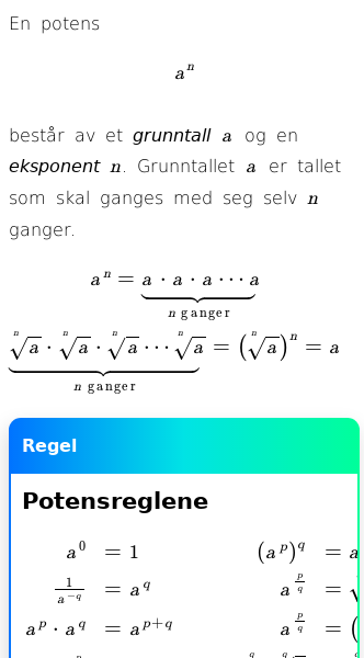 • Hva er potensreglene for bokstaver?
