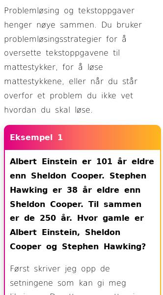 Oppslag om Hvordan sette opp en likning som beskriver oppgaven
