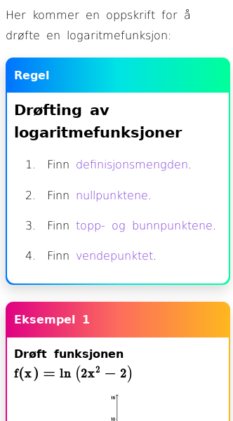 Oppslag om Drøfting av logaritmefunksjon
