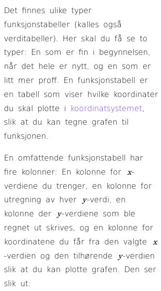• Funksjonstabell