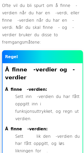 Oppslag om Å finne x- og y-verdier