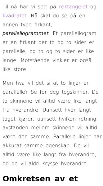 Oppslag om Omkrets og areal av parallellogram