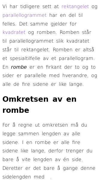 Oppslag om Omkrets og areal av rombe