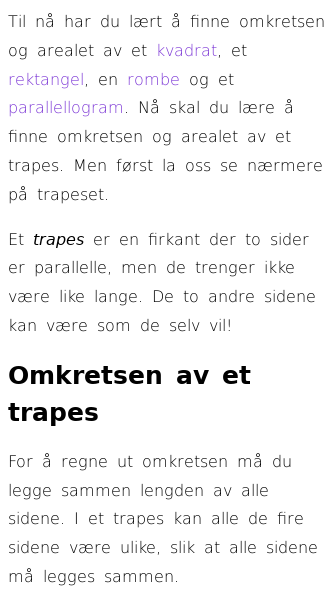 Oppslag om Omkrets og areal av trapes