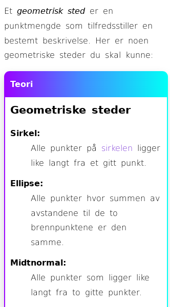 • Geometriske steder
