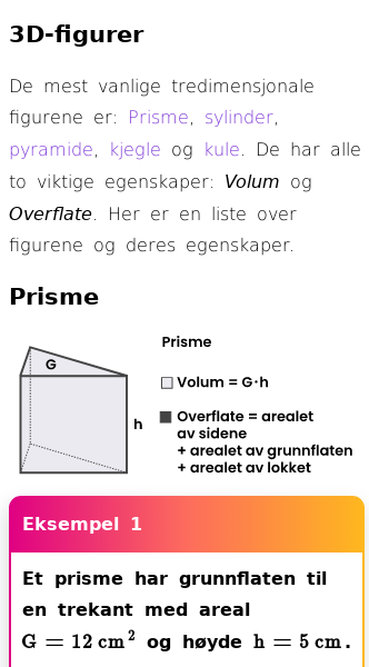 Oppslag om Volum og overflateareal til vanlige romfigurer