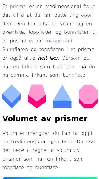 Oppslag om Volumet og overflatearealet av et prisme