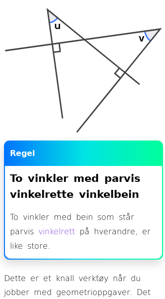 • To vinkler med parvis vinkelrette vinkelbein