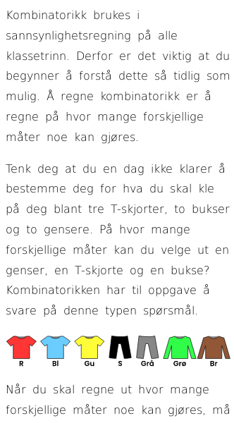 >Sannsynlighet og kombinatorikk>Kombinatorikk