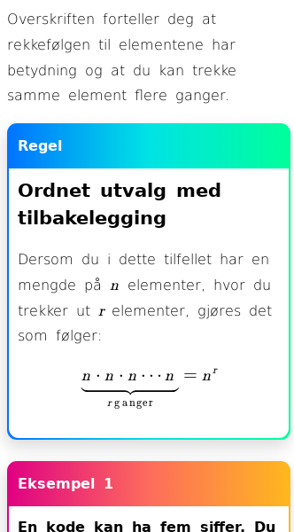 • Ordnet utvalg med tilbakelegging
