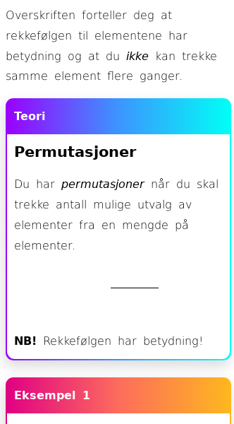 Oppslag om Permutasjoner (ordnet utvalg uten tilbakelegging)