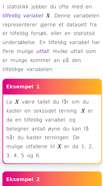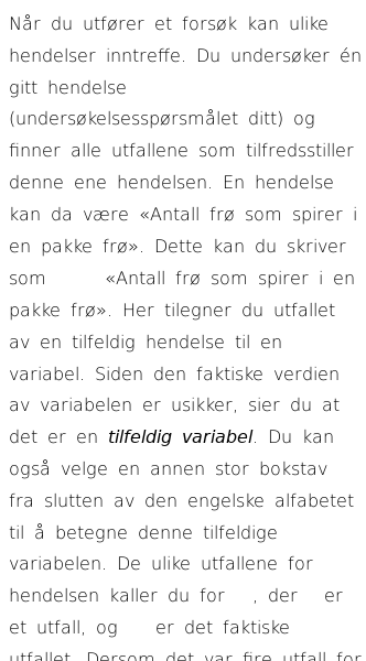 Oppslag om Tilfeldige variabler, hendelser og utfall