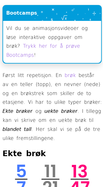 Oppslag om Ulike typer brøker