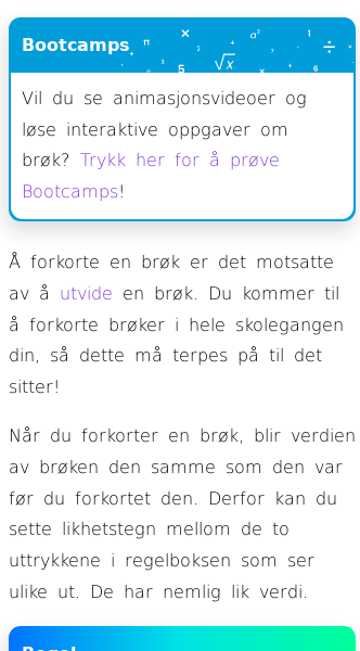 Oppslag om Forkorte brøk