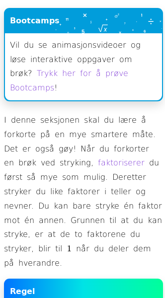 Oppslag om Forkorte brøk ved stryking