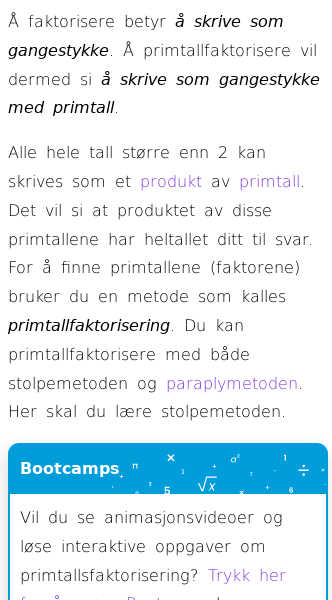 Oppslag om Primtallfaktorisering (stolpemetoden)