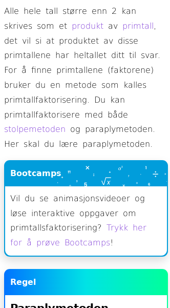 Oppslag om Primtallfaktorisering (paraplymetoden)